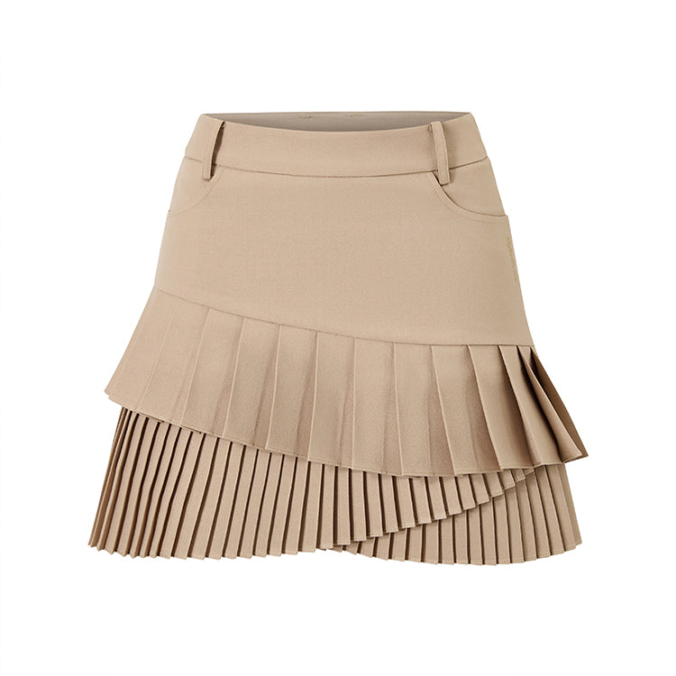This one-piece A-line skirt features a double-layer irregular pleat design, which is rich in layering and light and elegant. The naturally spread skirt modifies the body shape, creating an elegant and dynamic silhouette, combining design sense and comfort, suitable for commuting or daily wear.
