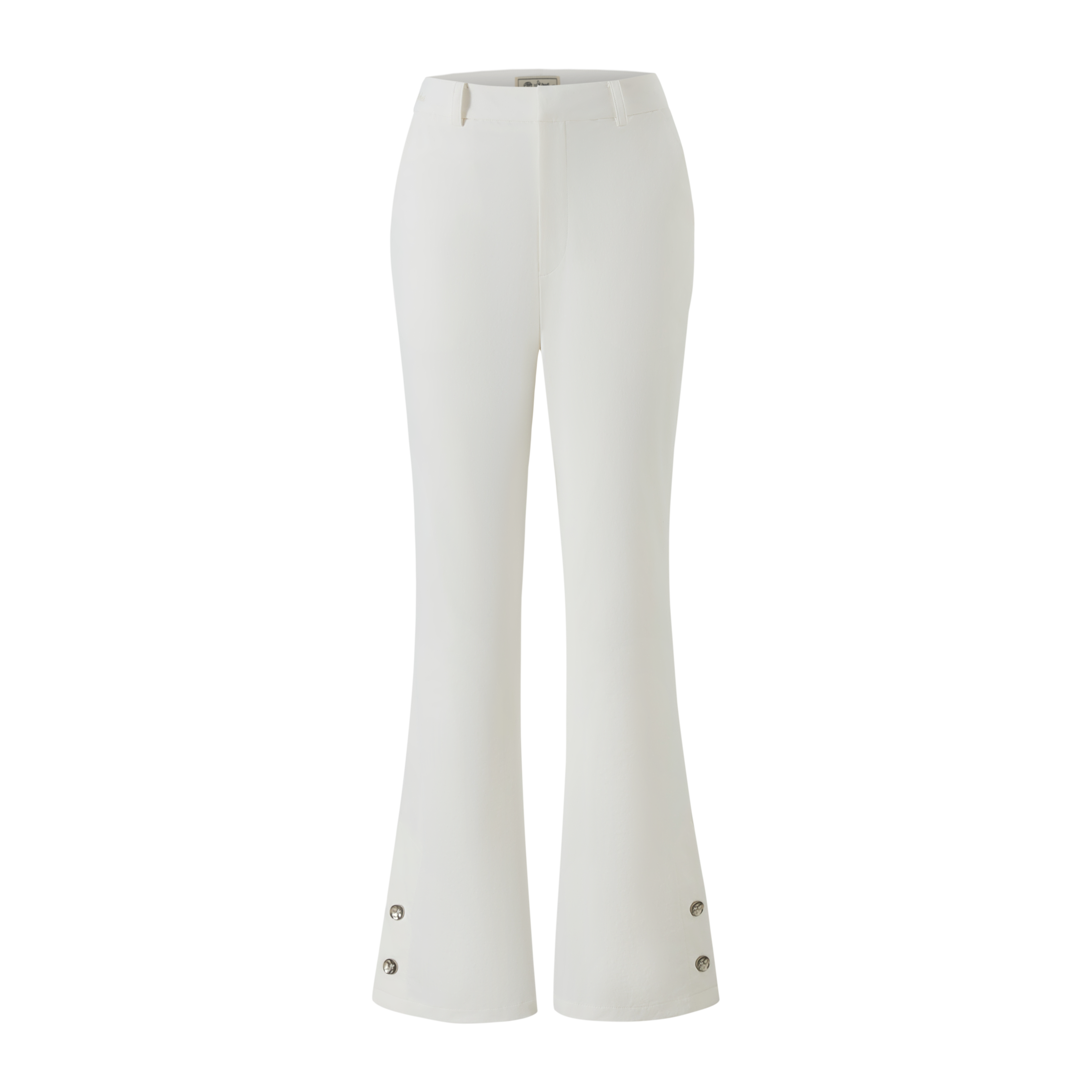 This pair of trousers combines a slim fit with a slightly flared hem design, which not only improves leg shape but also looks fashionable. The hems flare slightly from the knees, which is not exaggerated but stylish. It can be paired with a variety of tops such as T-shirts, shirts, sweaters, suits, etc.
