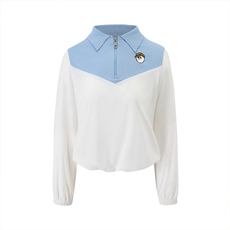 This white and blue quick-drying jacket adopts a V-shaped splicing design, which is simple, stylish, light and breathable. The quick-drying fabric is matched with a stand-up collar, which combines fashion and function. It is suitable for sports, commuting and other scenes, showing vitality and dynamism.
